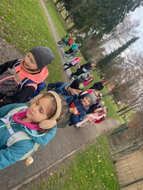 Im Zuge des Mobilitätsprojektes gingen wir den Schulweg eines Kindes ab und eruierten Gefahrenstellen wie Unterführungen oder Straßenüberquerungen. Wir hatten die Wahl, ob wir den kürzeren Schulweg mit mehr Verkehr oder den längeren Schulweg mit weniger Verkehr wählen. Die Entscheidung war einstimmig: Wir wählten den längeren Weg, auf dem dafür wenig Autos fuhren. Ein herzliches DANKE für die gute Verköstigung bei der Familie, sodass wir wieder gestärkt den Rückweg antreten konnten. Die Kinder genossen es, sich beim Gehen austauschen zu können und alle waren sich einig: Das war ein schöner Schulweg!