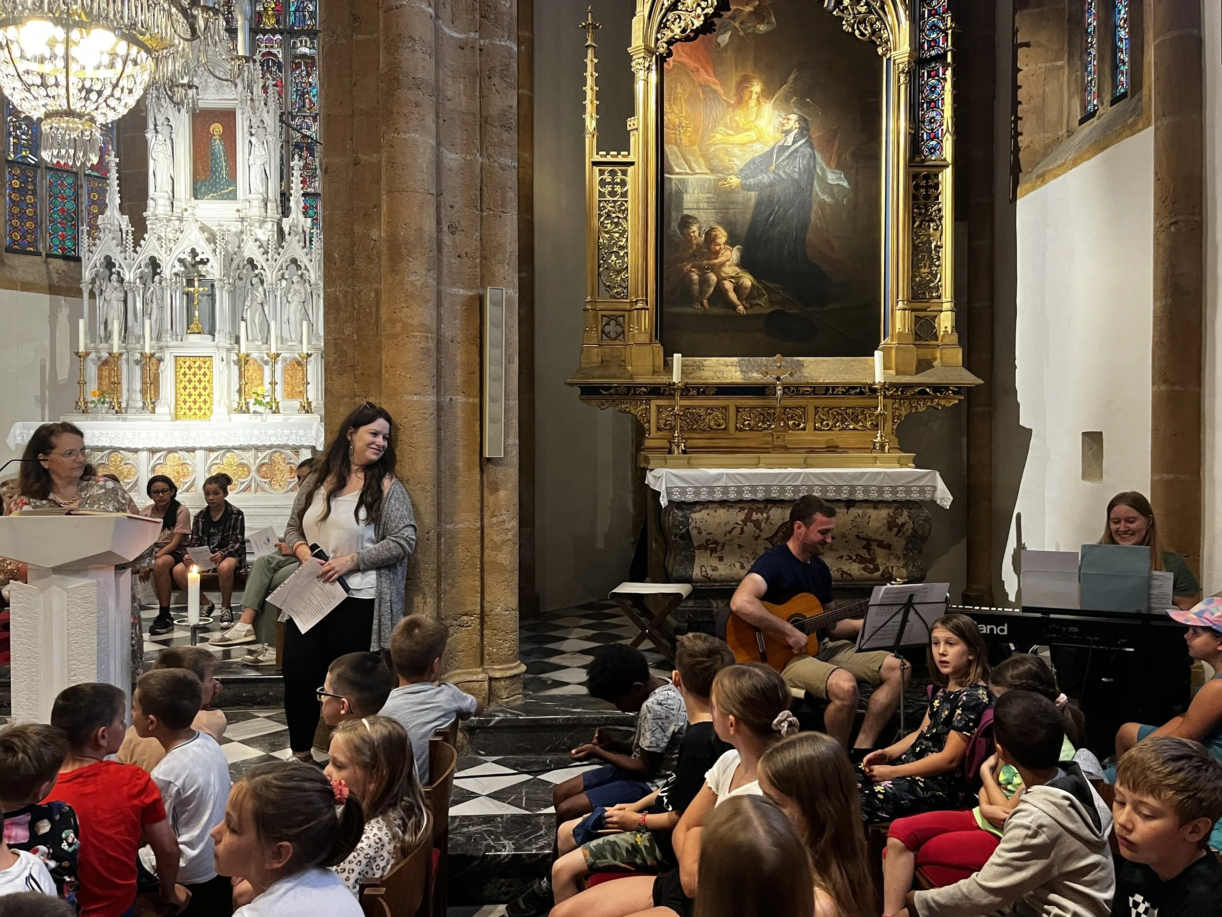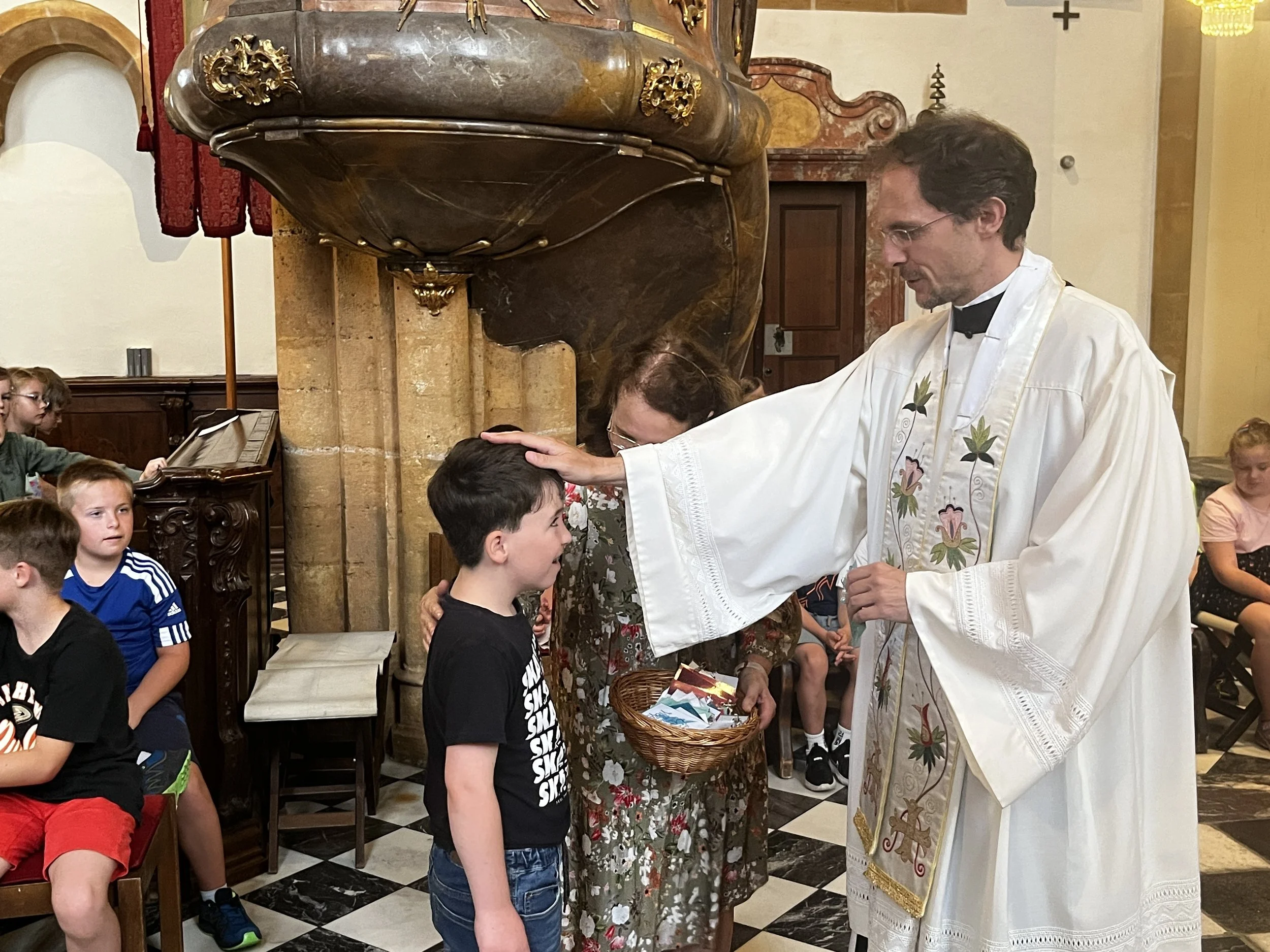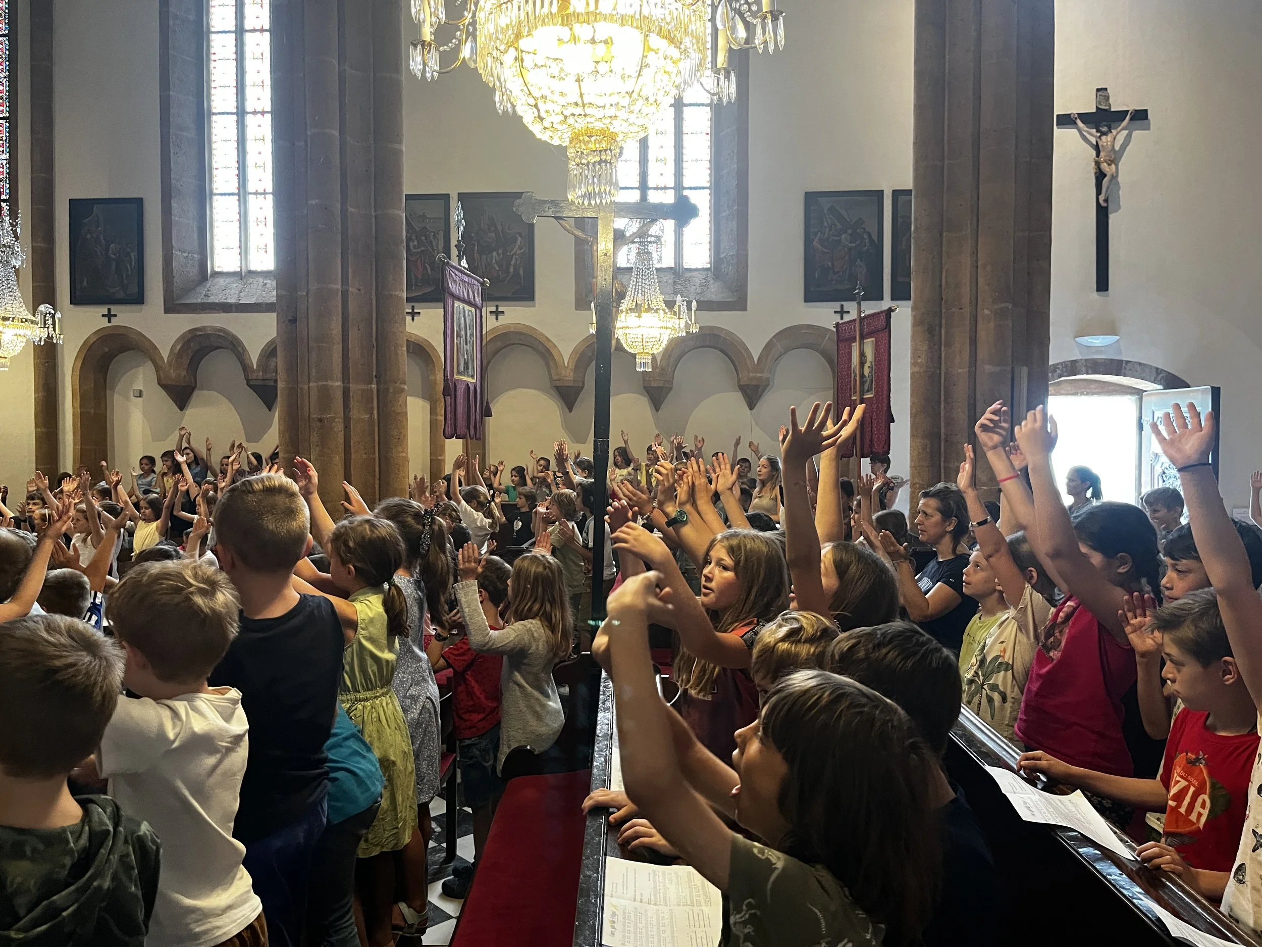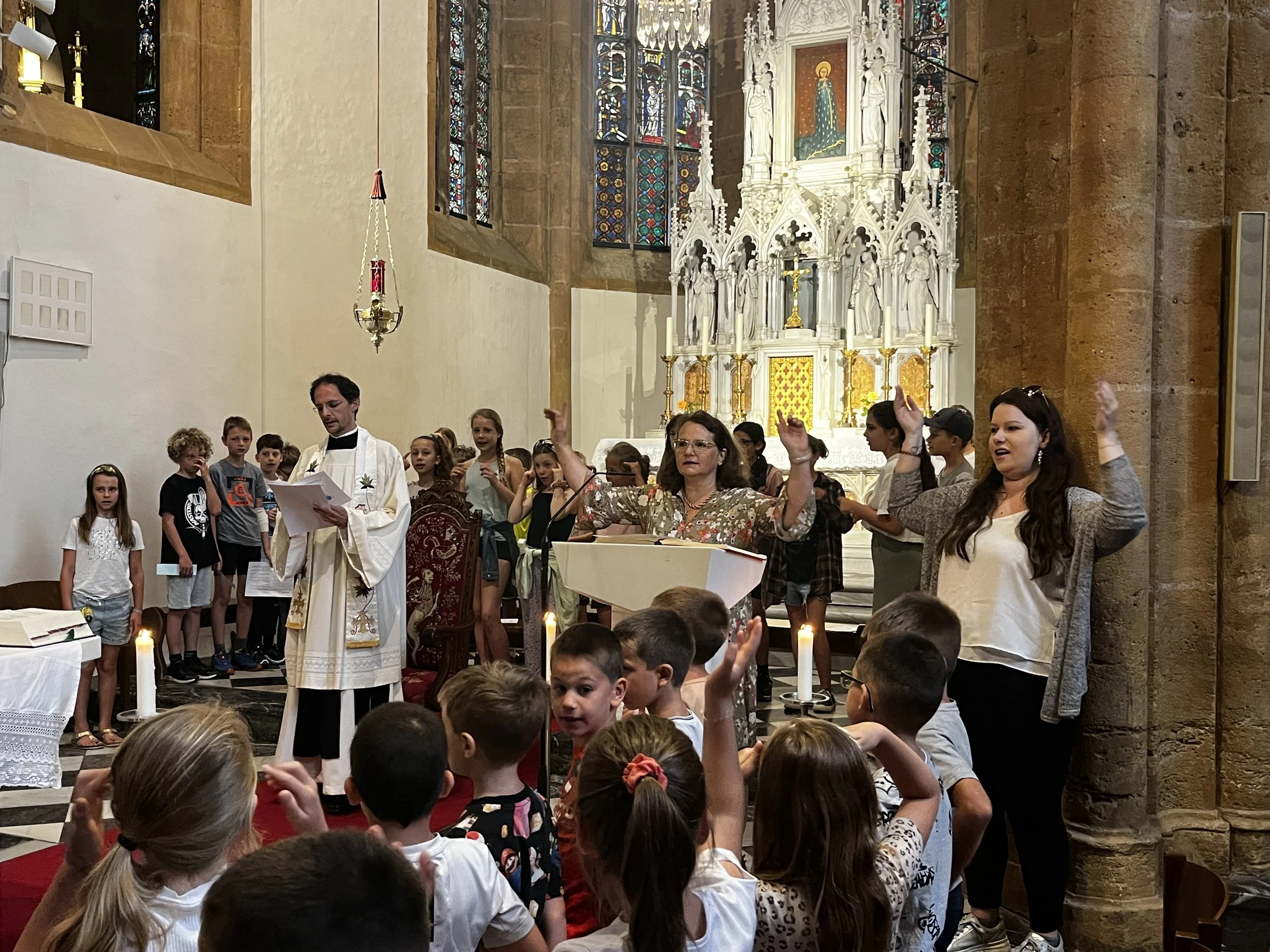 Am 27.6. haben wieder alle Klassen gemeinsam Schulschluss-Gottesdienst gefeiert. Unser Thema war Schutzengel und die 4. Klassen bekamen von Pater Raphael einen Einzelsegen und als Andenken einen Schutzengel-Anhänger. Es war sehr bewegend!
