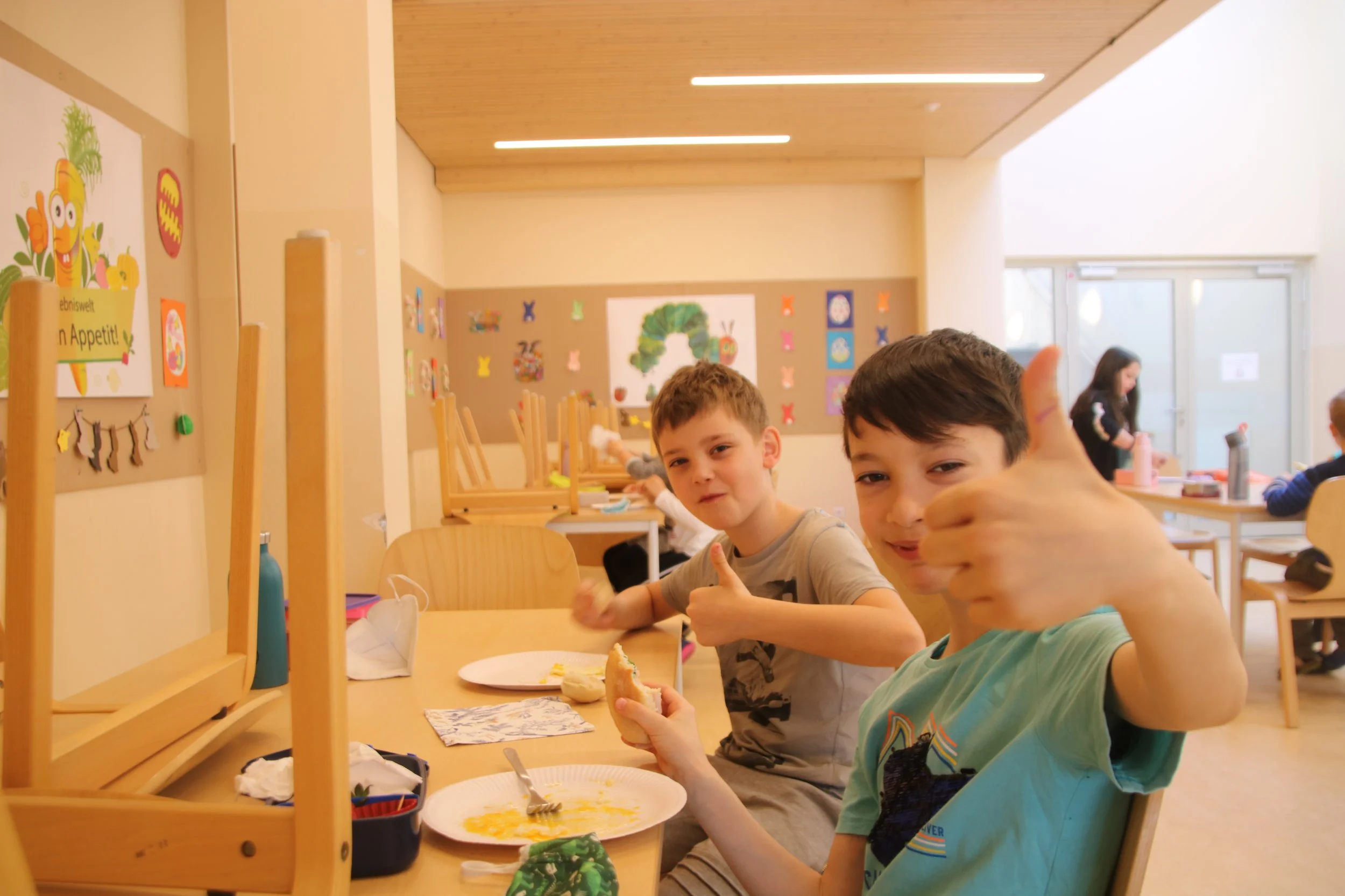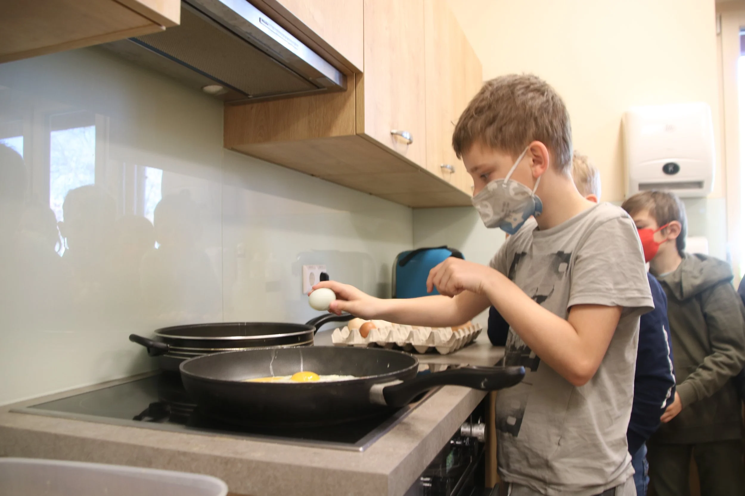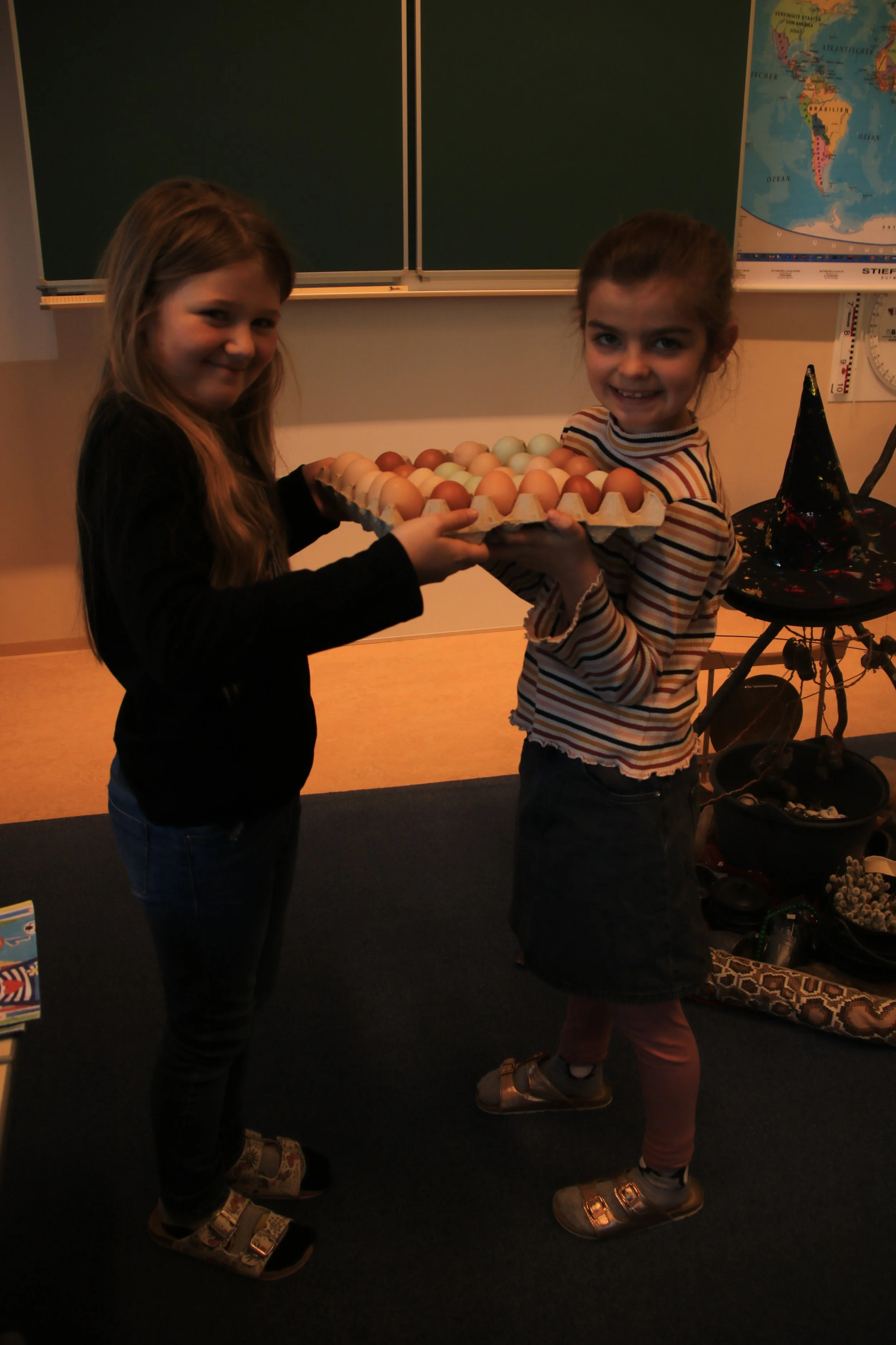 Ein herzliches Danke an Frau Brucher für die Eier! Aus den von uns voriges Jahr gebrüteten Küken wurden Hennen und so kamen wir in den Genuss, dass wir mit 30 Eiern Spiegeleier machen konnten. Es schmeckte herrlich!