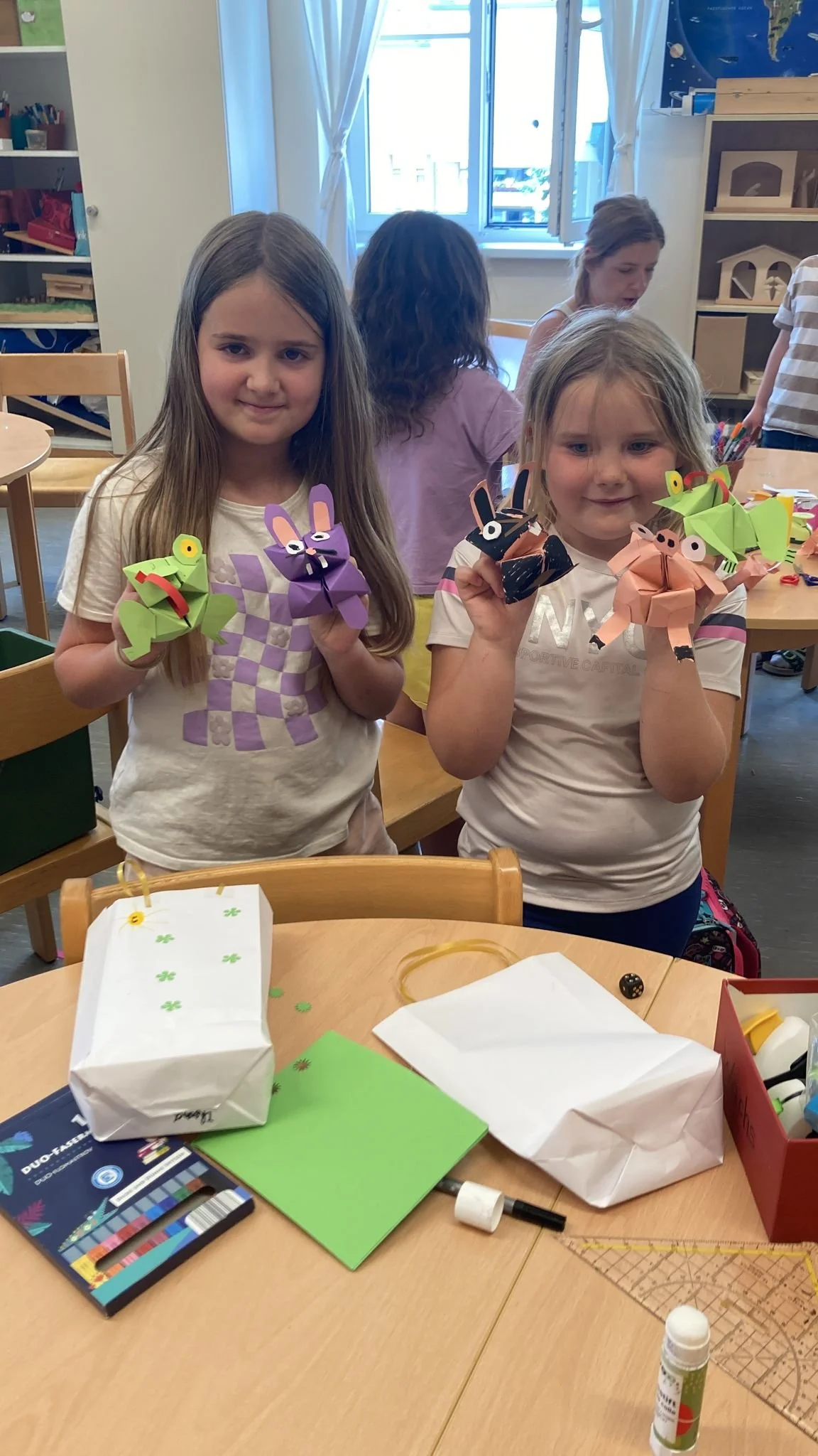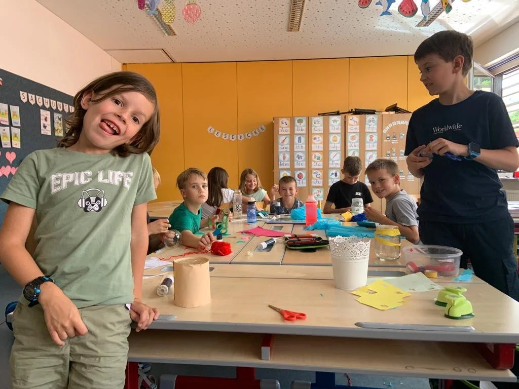 Voller Freude starteten die Kindern in den unterschiedlichsten Workshops wie Glück kann man schmecken, Daumenkino, Bluebots, Gesellschaftsspiele, Upcycling, Zeichenspaß, lustige Tiere und Fingerpuppen, Tischfußballturnier, Inline-Skating, Freundschaftsbänder, pimp my bike, Musik mit Boomwhakers, Pferde, Ciao - parli italiano, Speckstein schnitzen, Lesezeichen oder das Meer. Zwei ganz besondere Tage für unsere Schulkinder! Ein riesiges Danke an Frau Gutenbrunner für die Organisation!