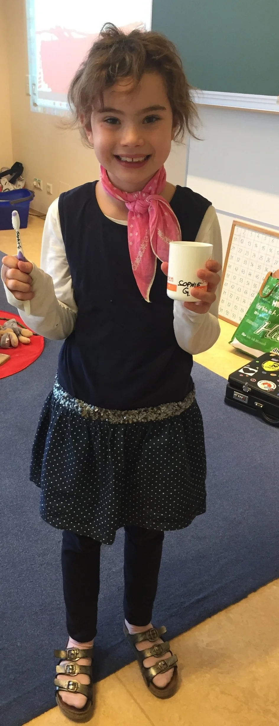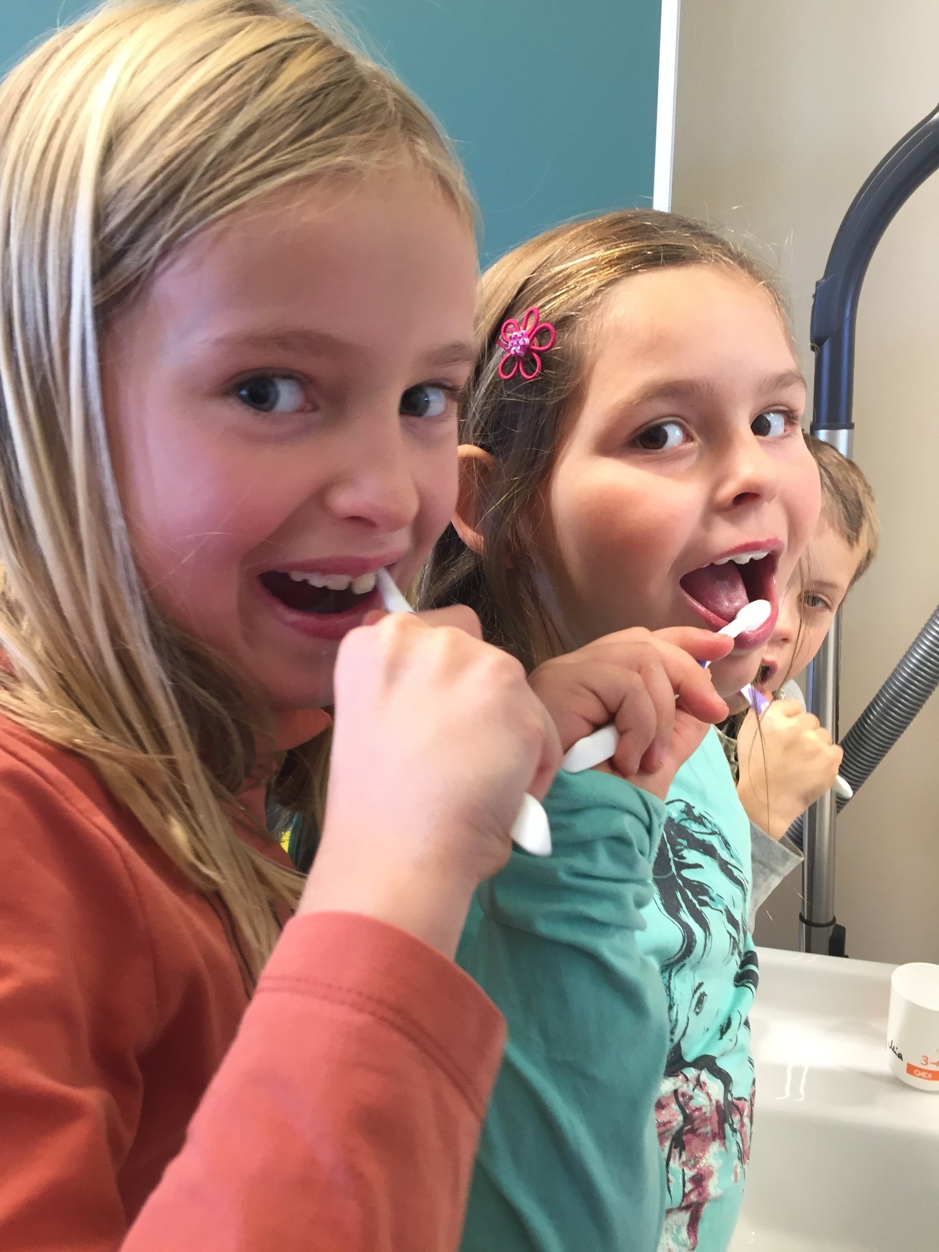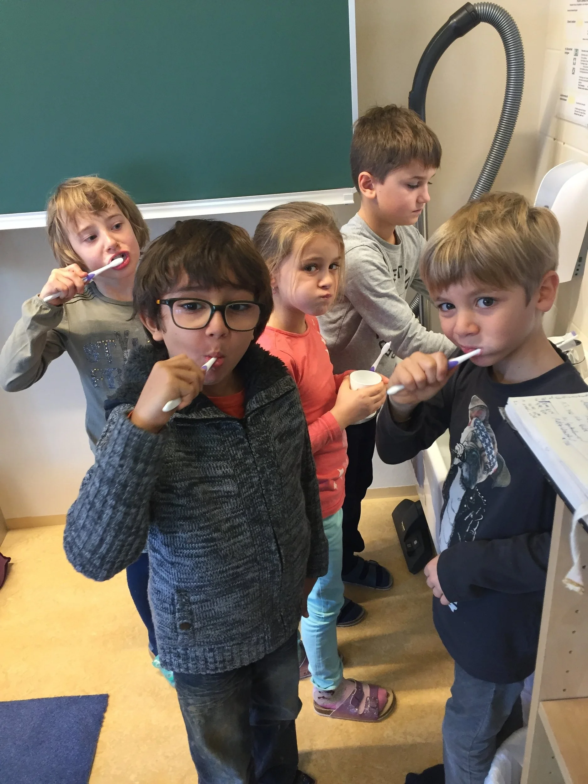 Die Zahngesundheitserzieherin Frau Andrea Jonke (Firma Styria Vitalis) arbeitet mit den Kindern zum Thema Zahnhygiene. Auf das richtige Putzen der Zähne wird dabei besonders viel Wert gelegt.