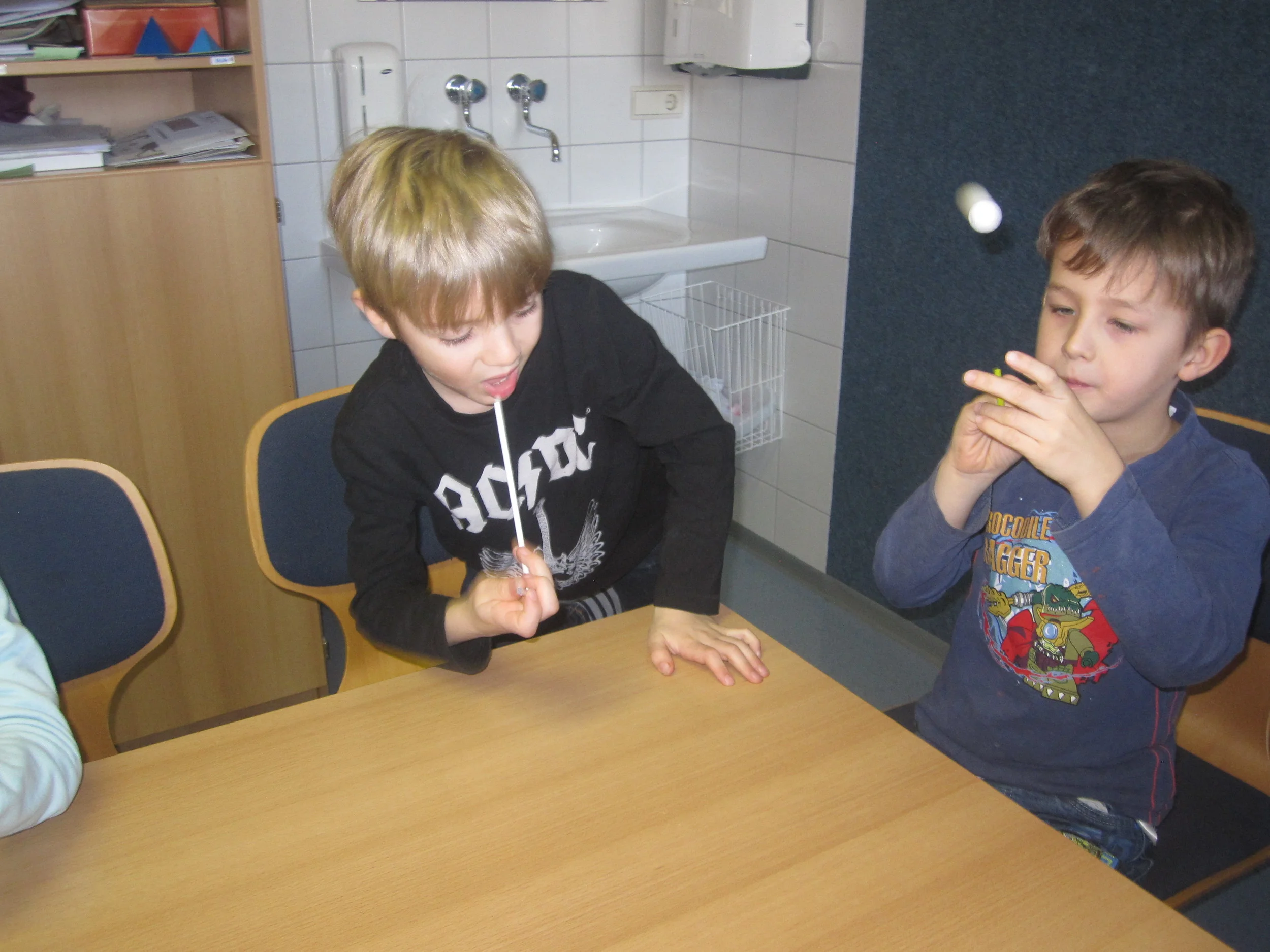Naturwissenschaft hautnah erlebt: Die Kinder der 1. Stufen erarbeiteten die Beschaffenheit von Stoffen. Was Luft bewirken kann, erfuhren die Kinder bei einigen Experimenten.